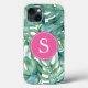 Add a touch of the tropics to your phone with this cute iPhone case design featuring a watercolor illustration of lush tropical banana and palm leaves in vibrant shades of green. The striking pink background highlights your personalized monogram in crisp white, creating a stylish and eye-catching accessory.