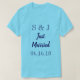 A custom design, this Just Married T-shirt features a monogram design of your initials. Underneath is "Just Married" in dark blue text. The date of your wedding is written in the same font as your initials. Place your order today!