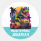 BLUE MONSTER TRUCK DINOSAUR Birthday Party Classic Round Sticker