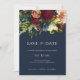 Blue Moody Floral Burgundy Wedding Save the Date Invitation
