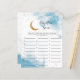 Cute over the moon theme baby shower "baby name" game card featuring watercolor splash in blue with faux gold moon and stars. The texts are editable. Perfect game to play during the shower. It asks guests to write down baby names that starts with each alphabets. Whoever finishes all alphabets first wins!