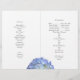Light blue floral border, folded wedding programs. Print your own wedding ceremony programs on decorated paper. Both sides of 8.5 x 11 inch paper have templates for information including a thank-you note from the bride and groom. Blue hydrangea flowers border the top and bottom, and paper must be folded after purchase.