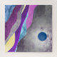A beautiful abstract landscape design with a blue moon and colorful textured rolling hills in shades of purple, violet, blue, cyan, and yellow.