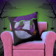 Blue Moon Witch Flying | Skateboarding Broom Throw Pillow