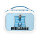 Our Monogrammed Moose for the Letter M is done in cute blue knit prints. Give your child an adorable personalized lunch box they can be proud of and they won't mix with other children's or if they leave it behind, they are likely to get it back!