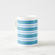 A Bone China Coffee Mug, with a chic Blue, Green and White Deckchair Striped pattern that coordinates with the Posh & Painterly 'Morning Glory' collection by Judy Adamson.. (This pattern will fit all of the mugs.)