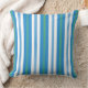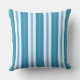 A Bold Throw Pillow or Cushion with a chic Blue, Green and White Deckchair Striped pattern that coordinates with the Posh & Painterly 'Morning Glory' collection by Judy Adamson.