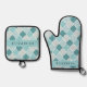 Blue Moroccan Trellis, Quatrefoil, Your Name Oven Mitt & Pot Holder Set
