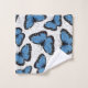 Seamless pattern design with blue morpho butterflies on hydrangea flowers linework background.