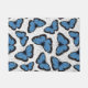 Seamless pattern design with blue morpho butterflies on hydrangea flowers linework background.