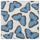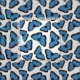 Seamless pattern design with blue morpho butterflies on hydrangea flowers linework background.