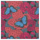 Seamless pattern with hand drawn blue morpho butterfly, hydrangea and peonies.