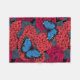 Seamless pattern with hand drawn blue morpho butterfly, hydrangea and peonies.