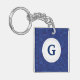 Personalized monogram, custom letter, deep blue tiles mosaic pixels design, hotel door number keychain