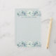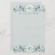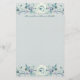 Flowery rose-bordered stationery is pretty yet subtle in watery blues, teal, violet and cream. Printed both sides on a powdery blue simulated classic stripe paper print image stationery background.