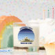 This cool blue vintage sunset over rocky mountains in nature makes a great image for a mountain vacation home candle.. Commemorate your hiking trip with a nature keepsake gift. Just add your own last name and the year with our personalization tool.