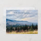 Beautiful tree covered mountain view postcard to share your deepest sympathies featuring a heartfelt encouraging Christian quote on the back as follows: "God remembers us in our sorrow and His faithful Love endures forever!"