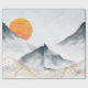 Blue Mountain landscape watercolor painting illustration. Abstract contemporary aesthetic backgrounds landscapes, with mountains, hill, sun and line art