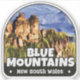 Arch-shaped Blue Mountains, New South Wales sticker featuring a striking digital art photo of the three sisters rock formation.