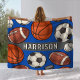 Blue Multi Sport Custom Name Monogram Fleece Blanket