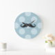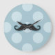 Blue Mustache, Curl Mustache, Stache, Polka Dots Large Clock