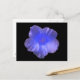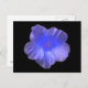 This postcard features a photograph of a Nasturtium flower. The photo has been artificially coloured resulting in a flower that has a range of different tones of blue ranging from bright in the centre to a more subtle mix of pale blues and purples on the outer petals. The background is black.