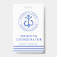 NewParkLane - Personalized Nautical Wedding Badge, with a blue watercolor anchor in a circular frame, containing your names and wedding date.