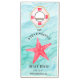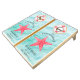 Turquoise Aqua Blue Cornhole set with Coral red star fish and nautical elements. The design features ocean waves background. . For any assistance in changing text, use message option below our store name.
