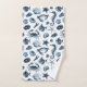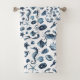 Beautiful blue & white bathroom bath towel set featuring blue starfish, crab, seahorses & sea shells.