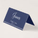 Blue and white nautical wedding folded place setting cards (horizontal tent) with white text printed on navy blue background. Dimensions of the cards are 2 inches x 3.5 inches (folded) and 4 inches by 3.5 inches (unfolded).