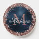 Blue Navy Foil Metallic Rose Gold Glitter Monogram PopSocket