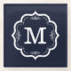 Blue Navy Monogram Glass Coaster