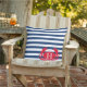 Blue Navy Red Crab Nautical Modern Stripes Outdoor Pillow