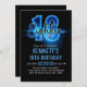 Blue Neon 18th Birthday Invitation