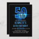 Blue Neon 50th Birthday Invitation
