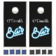 Blue Neon Bar Effect Any Name Script on Black Cornhole Set