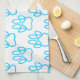 Blue Neon Dog Paw Print Pattern Kitchen Towel