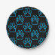 Blue Neon Dog Paw Print Pattern Paper Plates