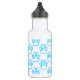 Blue Neon Dog Paw Print Pattern Water Bottle