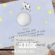 Baby birth announcement with periwinkle blue background and twinkling stars, This design features a baby birth announcement card, perfect for newborn photos, with a simple blue background with an overlay text, and a cute nursery rhyme theme, with moon and stars, new parents will love this minimalist, cow jumped over the moon, whimsical theme.