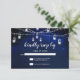 Blue Night Silver Mason Jar String Lights Wedding RSVP Card