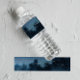 Blue Night Watercolor Landscape Wedding Water Bottle Label