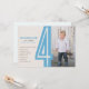 Yes, you can print on the back of your invitation for free! Most designs already have a corresponding design on the back that can be personalized using the Design Tool and going to Layers. This is a great way to communicate more information or further personalize your Blue Number Four Birthday Party Invitation. The option is really up to you.