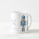 Sip your favorite holiday drink in style with this Blue Nutcracker Christmas Mug. Featuring watercolor blue nutcrackers, it brings a preppy, grandmillennial touch to your holiday mornings. Personalize it with your monogram and name to make it uniquely yours or create a thoughtful gift for someone special. A perfect way to enjoy coffee, tea, or cocoa while celebrating the season in timeless style.
