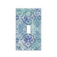 "Blue Ocean Beach Cottage White Wood Watercolor Light Switch Cover for Home Decor." Fill your beach house with warm and cool blue hand painted tile patterns over a rustic white wood background that were inspired by time spent in the Caribbean by internationally licensed artist and designer, Audrey Jeanne Roberts, copyright.