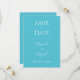 Gorgeous ocean blue “Save the Date” that is perfect as a prelude to your formal invitation for all your guests. Done with beautiful fonts in simple and yet elegant white. Perfect for your special occasion. A beautiful Save the Date for your beach wedding.