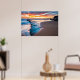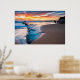 Featuring a breath taking view of a Cold Blue Ocean and sky scape leading out under a orange and blue sky along the sandy shore.this is a beautiful photo on this poster
