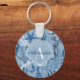 This ocean inspired monogrammed summer beach key chain features a pattern of underwater sea life such as seashells, seahorses, coral, jellyfish, and starfish, with a scallop shell framing the monogram initial and script name.