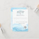 Silver seashells, starfish and sand dollar over a flowing blue wave of color response card to compliment beach wedding invitation.