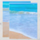 Beach scene scrapbook paper with image on both sides of 8.5 x 11 inch paper. Bright, tropical blue sea water and small waves coming up on the beach is the image. Each side is a little bit different. Choose the type of paper you prefer.